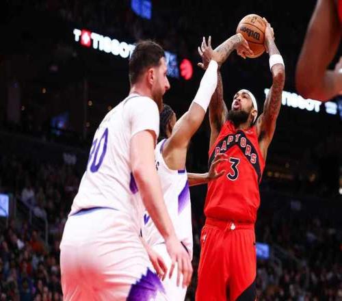中场休息回来,猛龙进攻火力大幅提升首次单节得分35+,爵士无缘连续两节得分30+。猛龙进攻端回暖开启反扑追分模式,巴雷特与巴恩斯持续攻传结合,引领猛龙用团队攻势逐步反超比分。猛龙单节35-28净胜7分,三节结束猛龙86-84反超爵士。前三节比赛,爵士三分26中8,马尔卡宁17中8得到23+8与科利尔18分6助攻,引领4人得分上双;猛龙三分28中11,巴雷特17+3+3与巴恩斯11+9+4,引领5人得分上双。