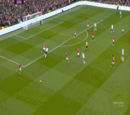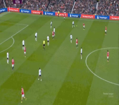 这显然是找对进攻方向的合理收获,但是,曼联的防守压力并未因此减轻,富勒姆在这一侧承压,但也能在这一侧直接向前,不管是在丢球前: